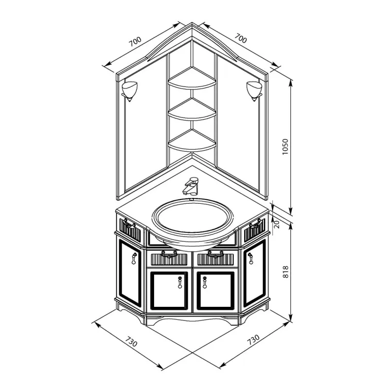 Угловое зеркало для ванной из комплекта мебели Акванет Луис выполнено в том же стиле, что и весь... Подробнее